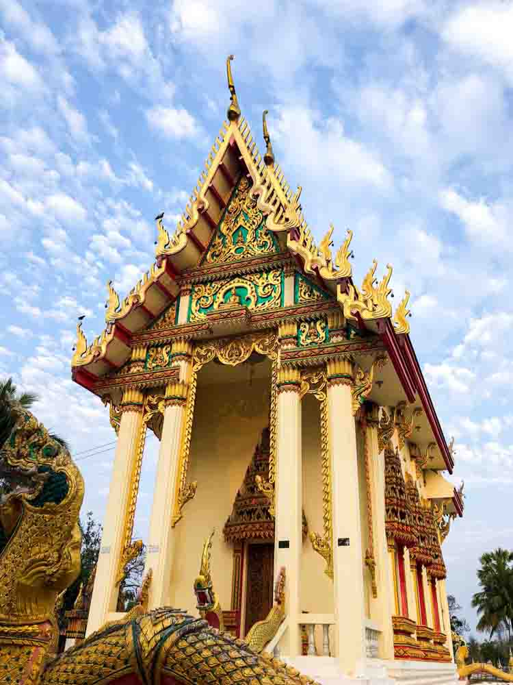 A beautiful and ornate local temple with bright colours and gold at The Better Life Place wellness retreat in Thailand.